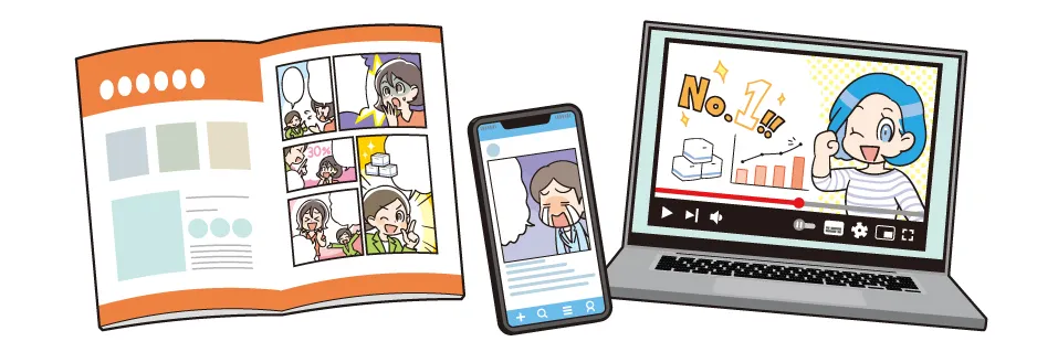 | 媒体 | 読者の視線誘導を意識した静止画構図 大胆なコマ割りや象徴的表現が可能 | ネット、テレビ、映画、動画配信、ゲーム内アニメーションなど |