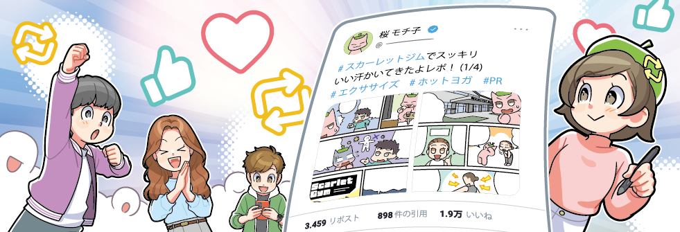 フォロワーを多数抱えるインフルエンサー漫画家なら、一度の投稿で数千〜数万リーチが期待できます。ストーリー性のある漫画はシェアされやすく、いいねやリポストなどのエンゲージメントも高まりやすいのが特長です。