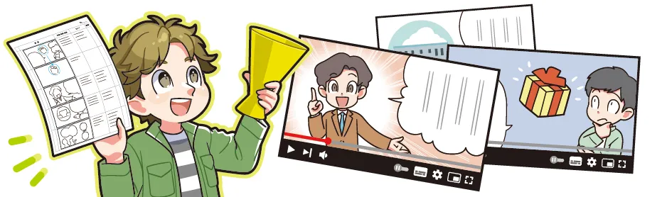 漫画のコマやイラストをベースに動きや演出を加え、ナレーション・BGM・効果音と組み合わせて制作する動画コンテンツです。YouTubeやSNS広告、サービス紹介、採用PR、展示会など幅広い用途で活用されています。